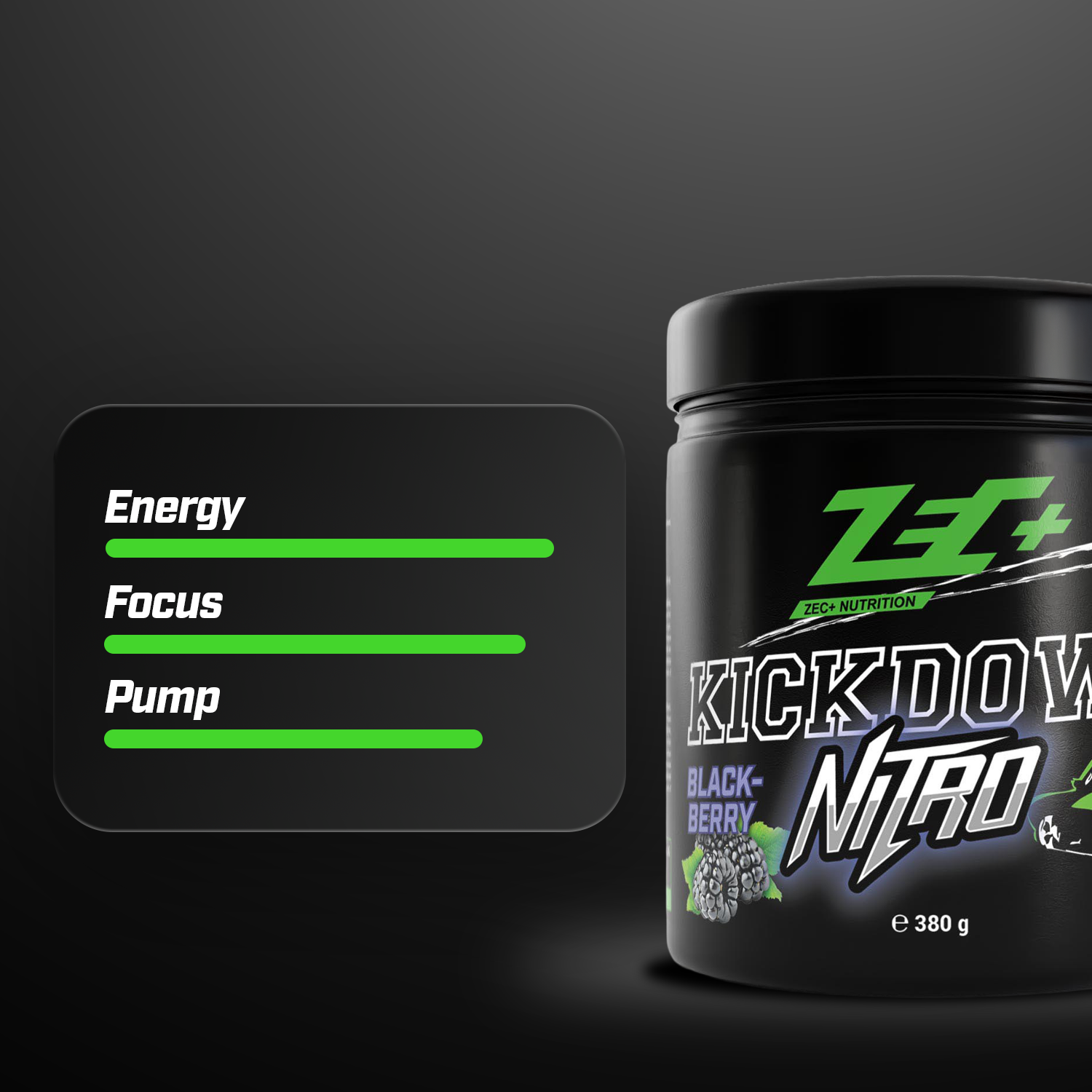 Ob schwere Grundübungen, intensive Volumenblöcke oder lange Trainingseinheiten – Kickdown wurde entwickelt, um dir genau dort einen Vorteil zu verschaffen. Seit Jahren ist er eines der beliebtesten Produkte der Zecplus-Community, weil er liefert, was Hardcore-Sportler brauchen: einen starken, verlässlichen Pre-Workout-Kick mit klarer Wirkung und ohne unnötigen Schnickschnack.